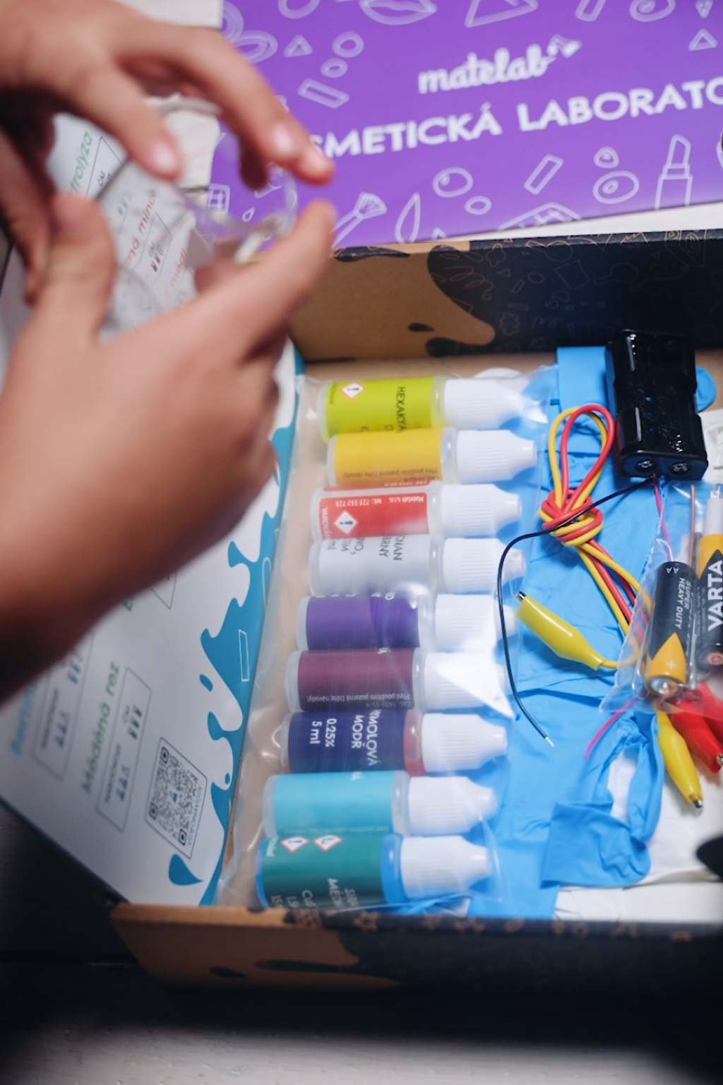 Čeká na vás devět nezapomenutelných experimentů na téma elektrochemie. Uvnitř sady naleznete chemikálie, doplňkové pomůcky a návody s podrobným postupem a vysvětlením každého pokusu. Všech pomůcek je v balení dostatek na několikanásobné opakování experimentů.